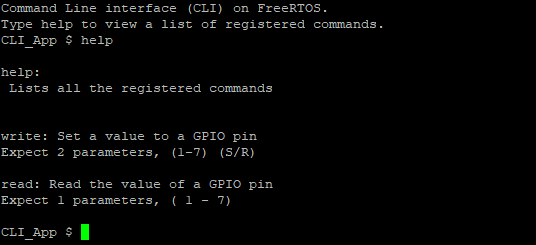 FreeRTOS_CLIRegisterCommand( &GPIO_Write ); /* Register the command "write" */