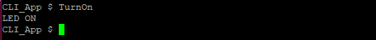 First, the "TurnOn" command is typed. This command is just designed to control and print a message in the terminal to indicate that an established LED going to switch to a high state. |