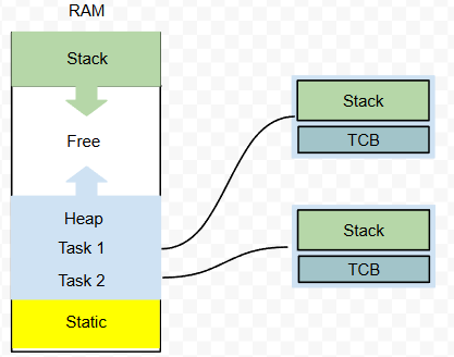 } tskTCB;- Stack Management: The Task Control Block (TCB) stores the stack’s start address in