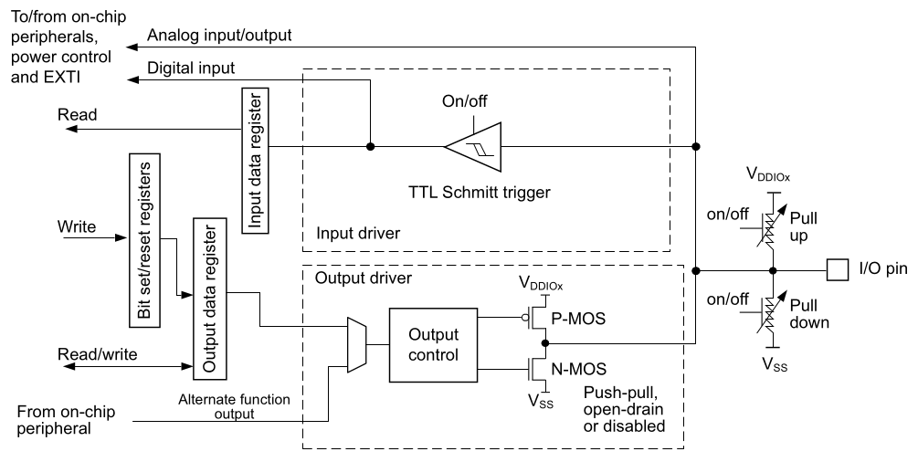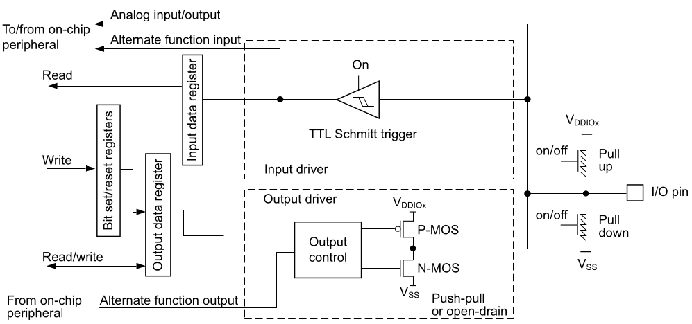 - Alternate function push-pull with pull-up or pull-down capability