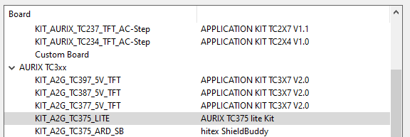 - Give name and then Next, on the Board select TC375xx lite Kit