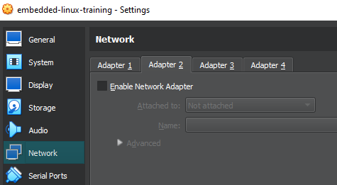 If you are using a virtual machine, it is necessary to create a network adapter that corresponds to the new connection. The following steps are specific to Virtual Box.
