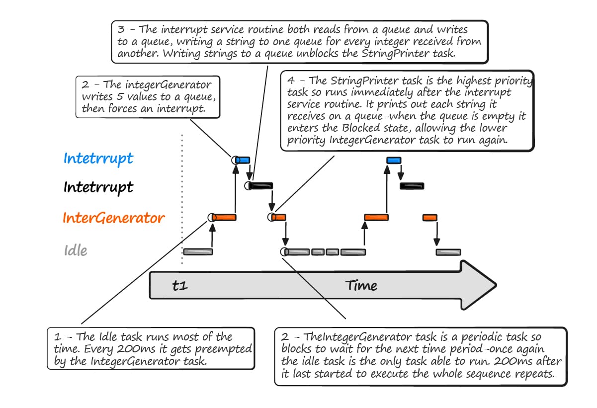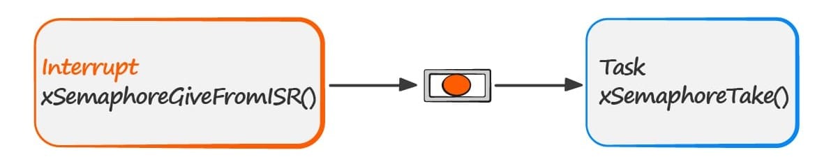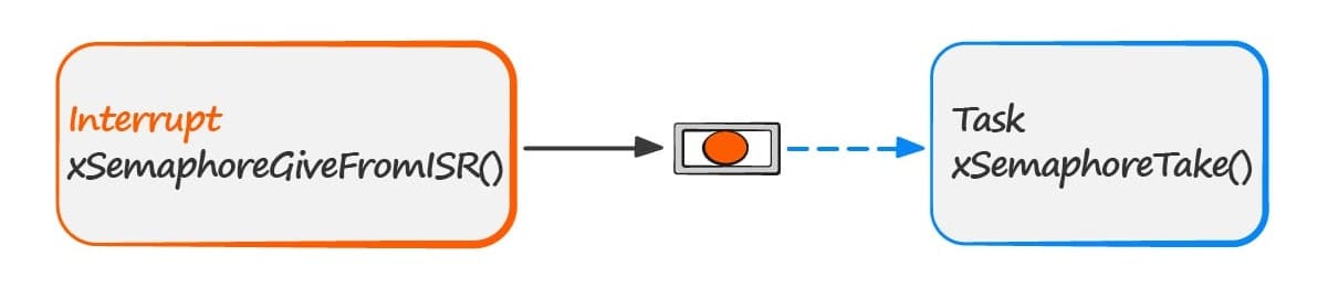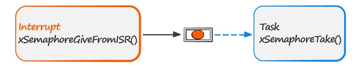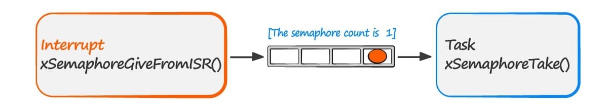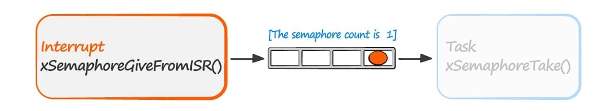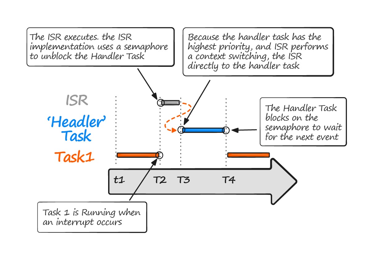 The task can now perform its action, when complete it will once again attempt to take the semaphore which will cause it to re-enter the Blocked state