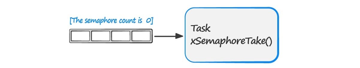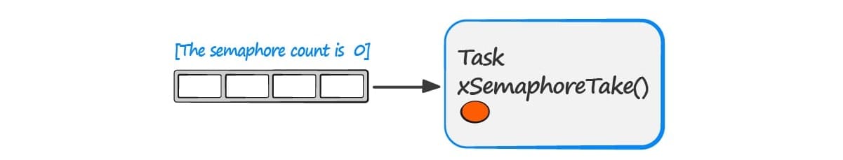 The semaphore is not available…. so the task is blocked waiting for the semaphore.