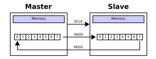 The SPI or "Serial Peripheral Interface" is a synchronous serial communication protocol, full duplex, created by Motorola. Devices are connected in Master/Slave mode, in which the master is always responsible for initiating communication.