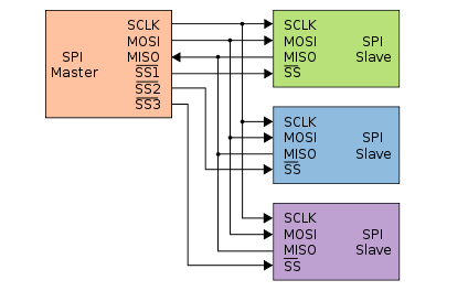 The SPI communication protocol is a bus, which means that multiple devices can be connected to it. In such cases, only one device should act as the master, and the remaining devices must be set as slaves. Each slave device should have its own Slave Select (SS) line, while the Clock (SCLK), Master Output Slave Input (MOSI), and Master Input Slave Output (MISO) lines can be shared among all devices.