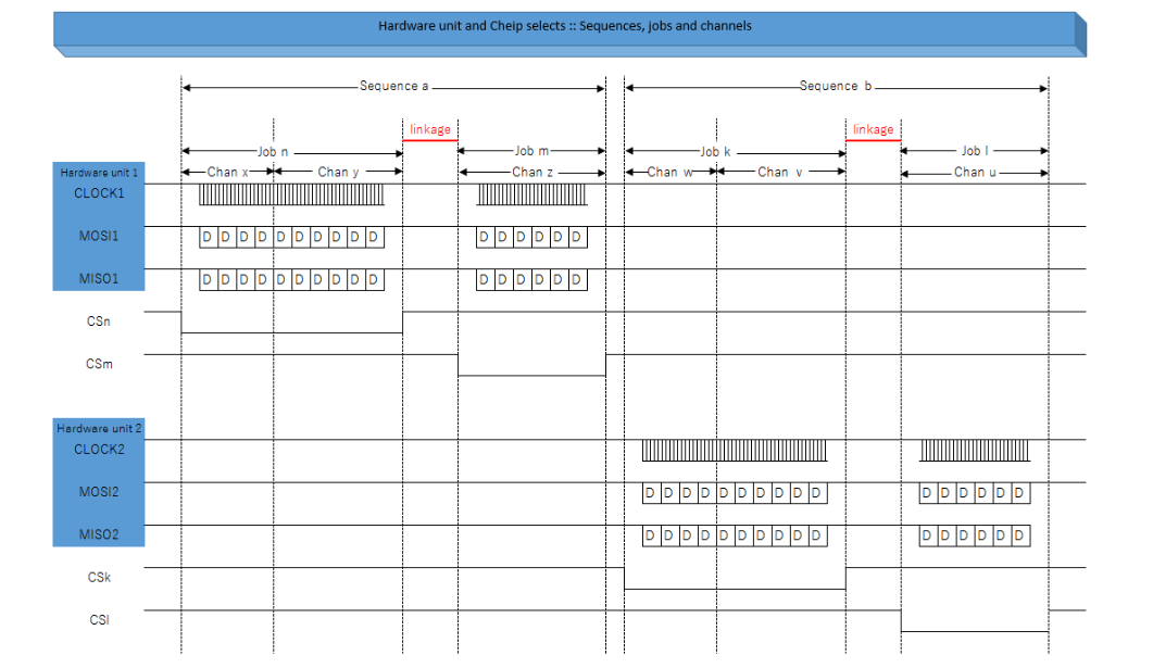 - SPI: Sync Tx/Rx, Multi channels, Multi Jobs, 1 Sequence