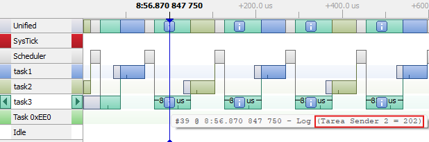 SEGGER_SYSVIEW_PrintfHost("Tarea Sender 2 = %d", xReceivedStruct->ucValue); /* Print the message on Terminal */