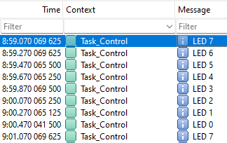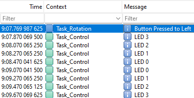 When the button to change to Left is pressed a message is send to terminal, and task "Task_LED_Control" wait to read all the elements on Queue to change the LED rotation.