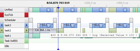 SEGGER_SYSVIEW_PrintfHost( "Received Value = %d\n", lReceivedValue ); /* Print the received value form Queue in Terminal */
