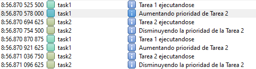 SEGGER_RTT_printf( 0, "Aumentando prioridad de Tarea 2\n" ); /* Print a message of change priority to Terminal */
