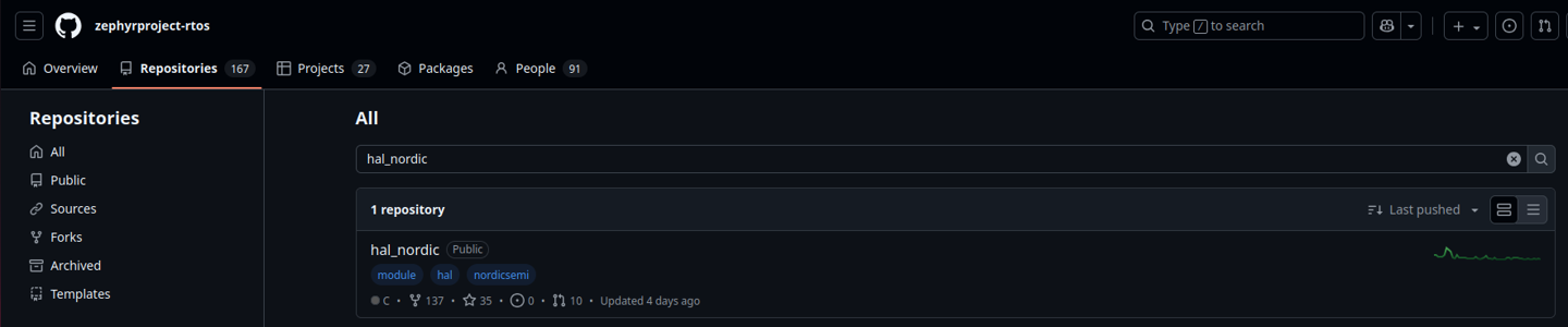 Generating files from /home/user/workspace/build/zephyr/zephyr.elf for board: nrf54l15dkBut where did you get the names of the project and modules, well that it is easy, from the official Zephyr project github repository Zephyr Project because each of them is a repository that west clones using git, there is nothing fancy behind.